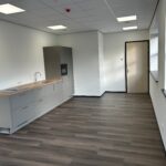 In opdracht van de eindgebruiker heeft E.M.S. Afbouw Didam de volledige afbouw van het nieuwbouwkantoor uitgevoerd. Het project omvatte het leveren en monteren van systeemwanden en glaswanden, het aanbrengen van plafonds, het uitvoeren van tegelwerk en het leggen van PVC-vloeren. Daarnaast zijn pantry’s geleverd en geïnstalleerd. Door deze integrale aanpak is een representatieve, functionele en hoogwaardige werkomgeving gerealiseerd, volledig afgestemd op de wensen van de eindgebruiker en opgeleverd volgens de afgesproken kwaliteitseisen.