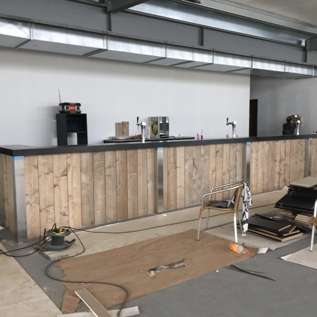 Vanaf de basis hebben wij het interieur volledig opgebouwd en afgewerkt, waarbij verschillende afbouwwerkzaamheden zijn uitgevoerd. Door vakmanschap, oog voor detail en een goede samenwerking is er een ruimte ontstaan die perfect aansluit bij de sfeer en beleving van de supporters.