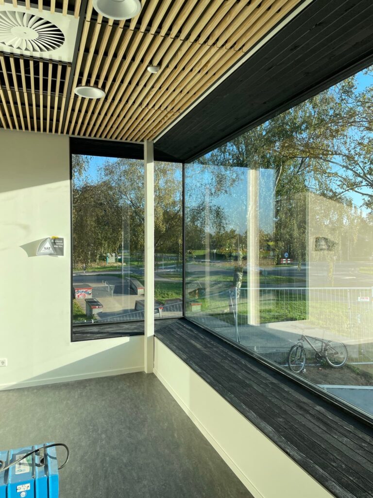 Onze werkzaamheden bestonden onder andere uit het realiseren van verschillende binnenafwerkingen en het plaatsen van plafonds. Een bijzonder onderdeel van dit project was het monteren van een stijlvol houten lattenplafond, dat zorgt voor een warme en moderne uitstraling in het gebouw.