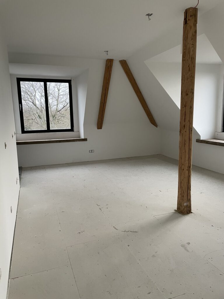 Bij Hotel Hoch Elten verzorgden wij de volledige afbouw van het pand, van metalstud wanden tot droge gipsvloeren. Het resultaat is een strak, functioneel en comfortabel interieur, volledig klaar voor gebruik.